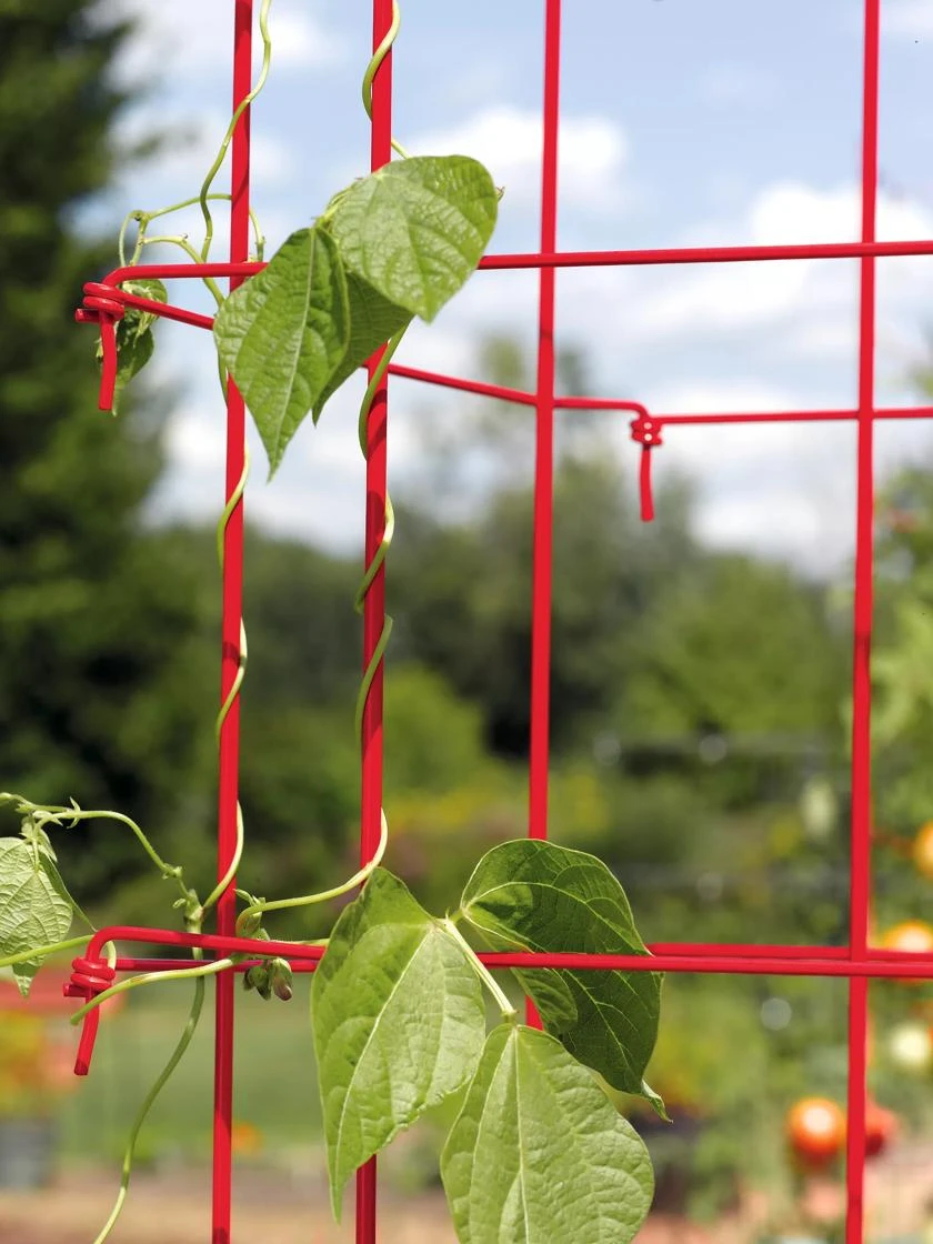 Grow an incredible amount of beans with our tallest, strongest and sturdiest bean trellis tower. The secret is thicker supports coupled with 10″ legs that hold the structure securely in the ground. The Bean Tower in our test garden yielded a fantastic harvest between mid-July and late September — in just 1-1/2 square feet! Supports are 5 mm thick with 3.5 mm crosspieces. Openings are 7-1/2″ square to allow easy harvesting. In windy locations, we recommend anchoring with our Extra-Tall Earth Staples, sold separately.