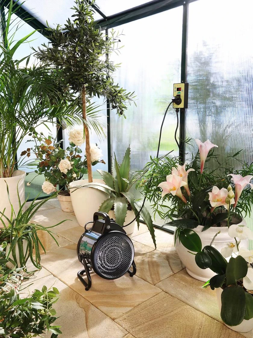 Engineered in Germany and designed for humid environments, this durable fan heater is ideal for greenhouses, but can be used as a space heater anywhere you need a little extra warmth in your shed, garage, sunroom, or office. Tilt-adjustment for the perfect angle and carrying handle for portability. Energy efficient, quiet, and easy to operate.