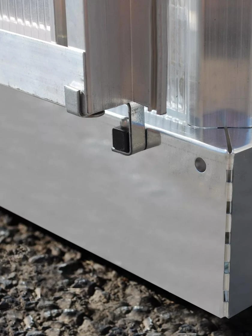 • ​Steel base, aluminum frame, double wall polycarbonate panels on roof, clear polycarbonate walls on sides